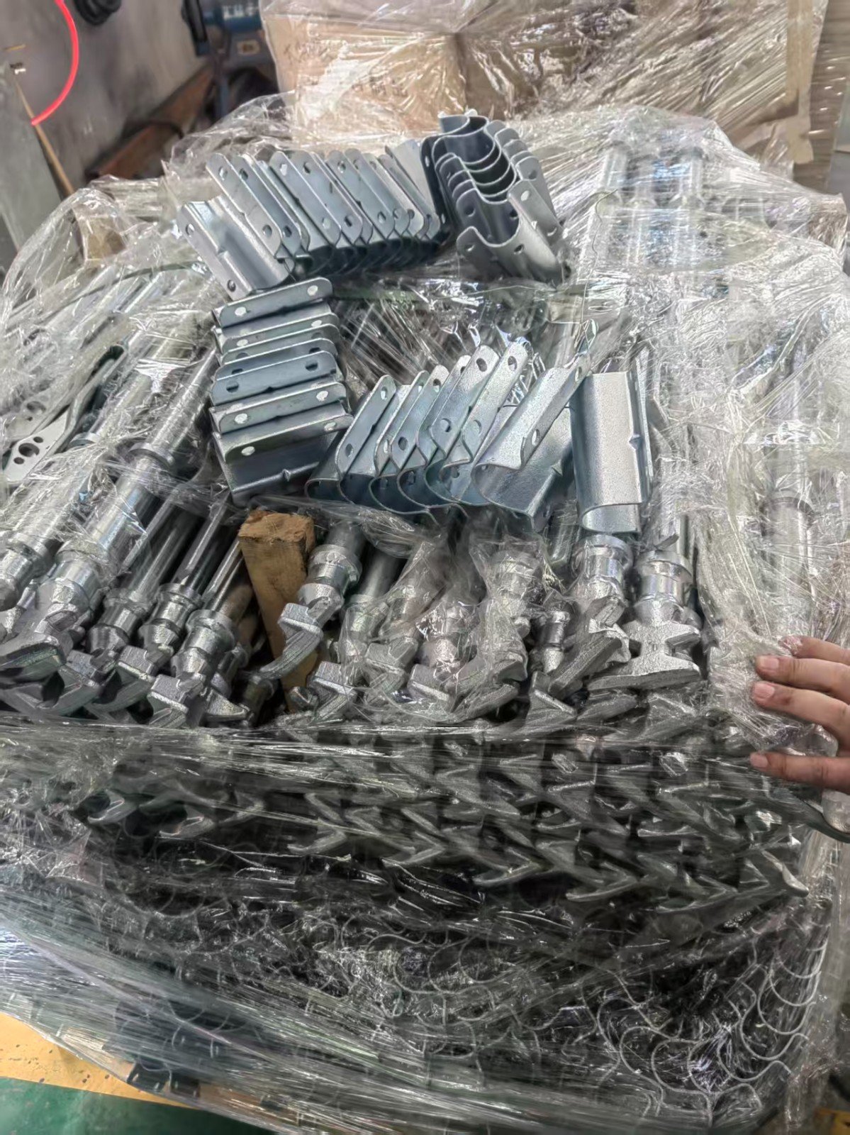 Certain parts, such as corner fittings and reinforcement ribs, require specific shapes. These components are produced using heavy-duty stamping machines and custom molds.