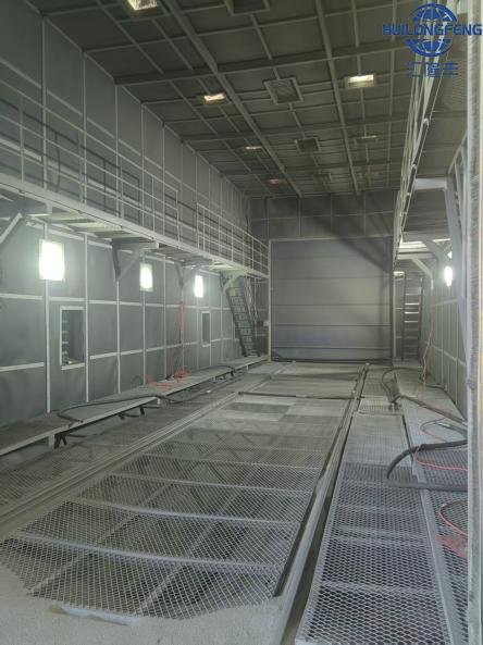 To ensure long-term corrosion resistance, the steel surface undergoes shot blasting, a process that removes rust, scale, and impurities using high-speed steel particles.